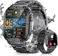 Militär Smartwatch Herren Annehmen/Anrufen Pulsuhr Fitnessuhr Tracker Schrittzäh
