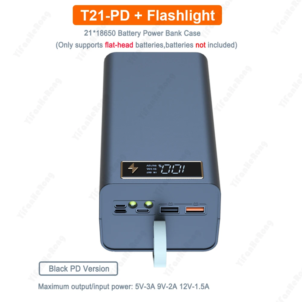 Schnelle Ladung 21x18650 Fall Power Bank Unterstützung Schnell 3,0 PD Drahtlose Ladegerät Batterie Box Für Telefon 21*18650 power Bank Fall T21